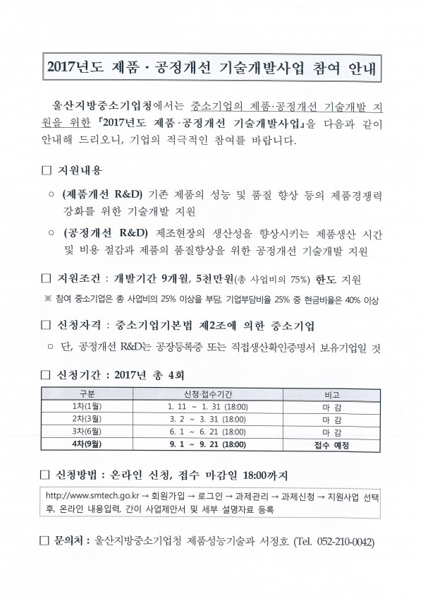 2017년도 제품․공정개선 기술개발사업 참여 안내