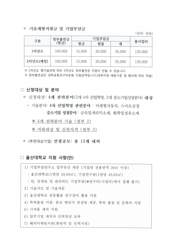 - 기술분야: 4차 산업혁명 관련 기술 중 ‘미래형자동차, 스마트공장’
