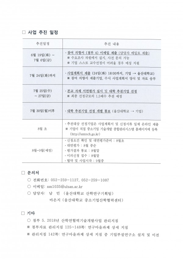 첨부 첨부 5. 2018년산학연협력기술개발사업관리지침본문.hwp (452.0K) 2회 다운로드 DATE : 2018-07-04 17:16:19