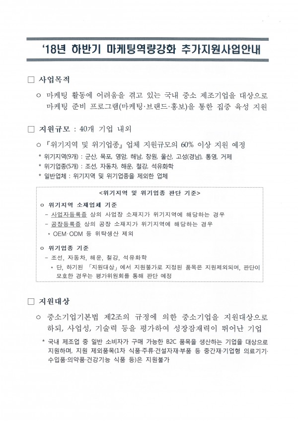 2018년 하반기 마케팅역량강화 추가지원산업안내