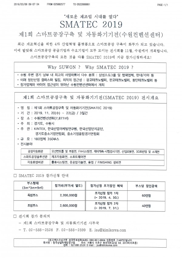SMATEC 2019 제1회 스마트공장구축 및 자동화기기전(수원컨벤션센터)
