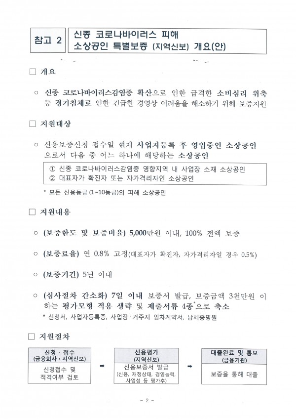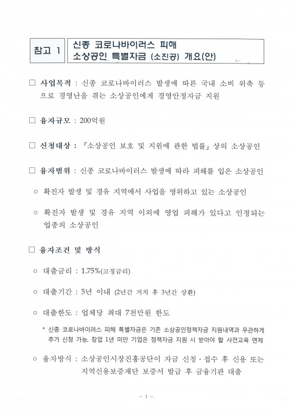 신종코로나19 피해 관련 소상공인 지원 안내 |