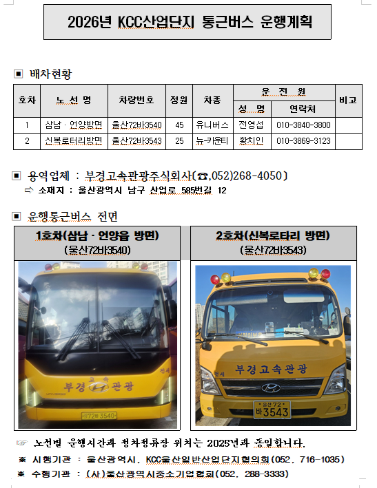 2026년 kcc 통근버스 변경 된 용역업체 및 버스 정보 안내