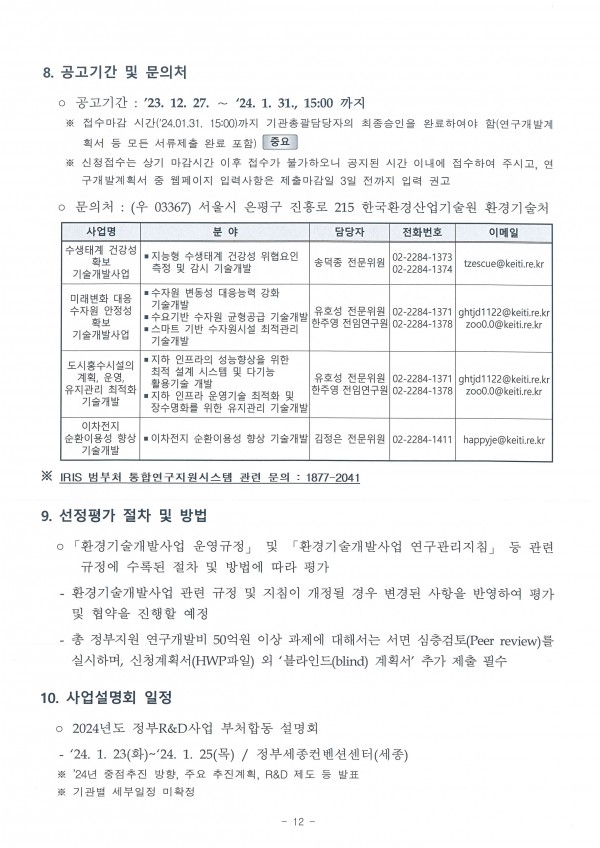 2024년도 환경기술개발사업 신규과제 추진계획 공고 |