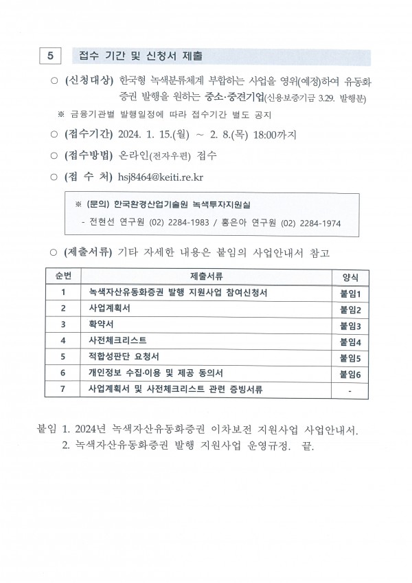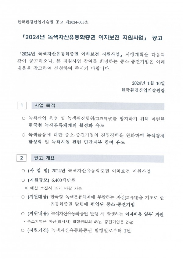 2024년 녹색자산유동화증권 이차보전 지원사업 안내 |