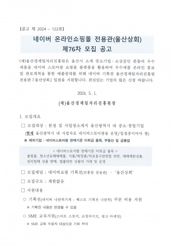 네이버 온라인쇼핑몰 전용과(울산상회) 입점 제76차 모집 |