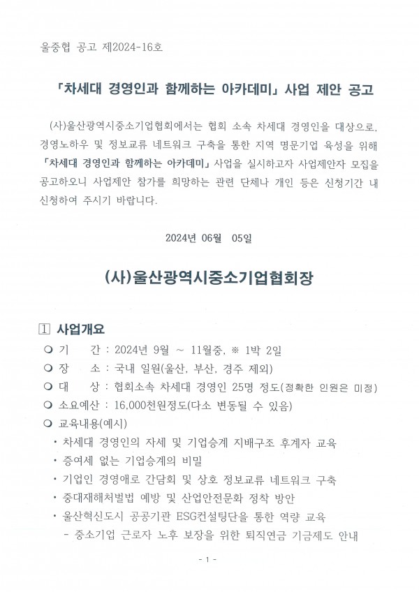 [공고]차세대 경영인과 함께하는 아카데미 사업 제안 |