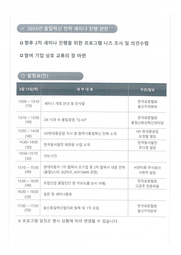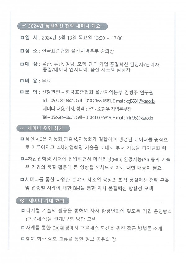 2024년 한국표준협회 품질혁신 전략 세미나 안내 |