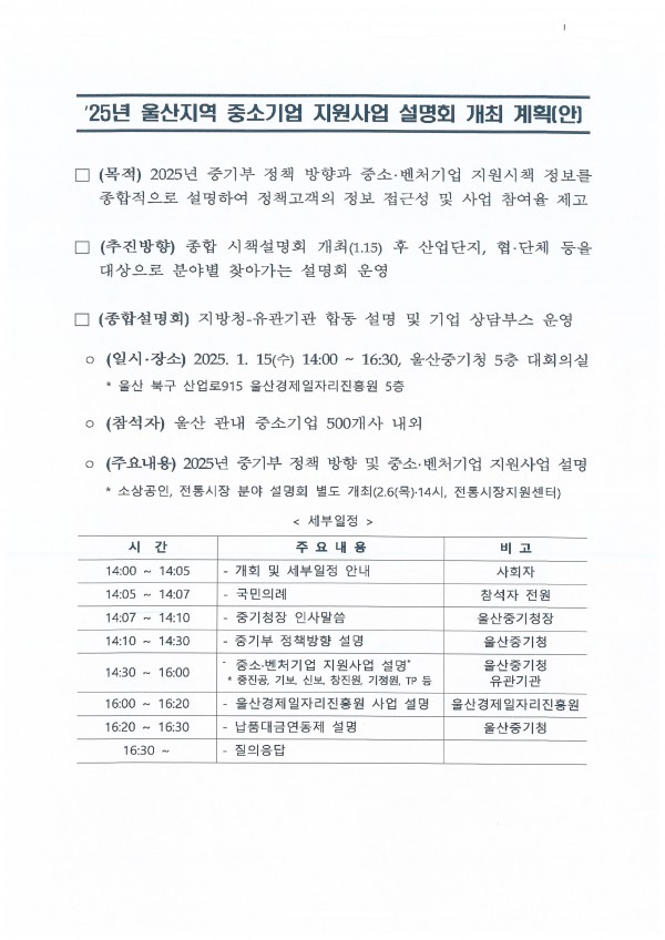 [울산중기청/경제일자리진흥원]2025년 중소기업 지원사업 설명회 개최 안내