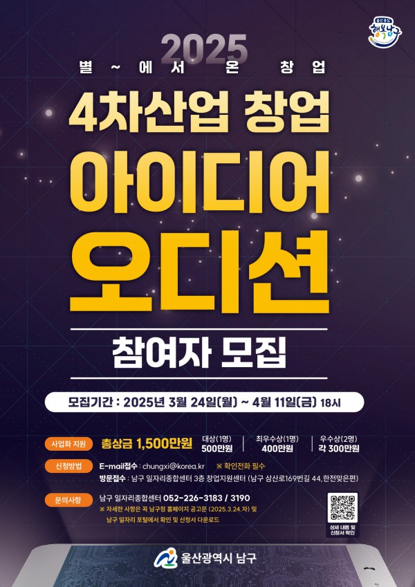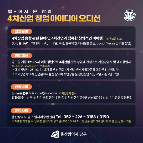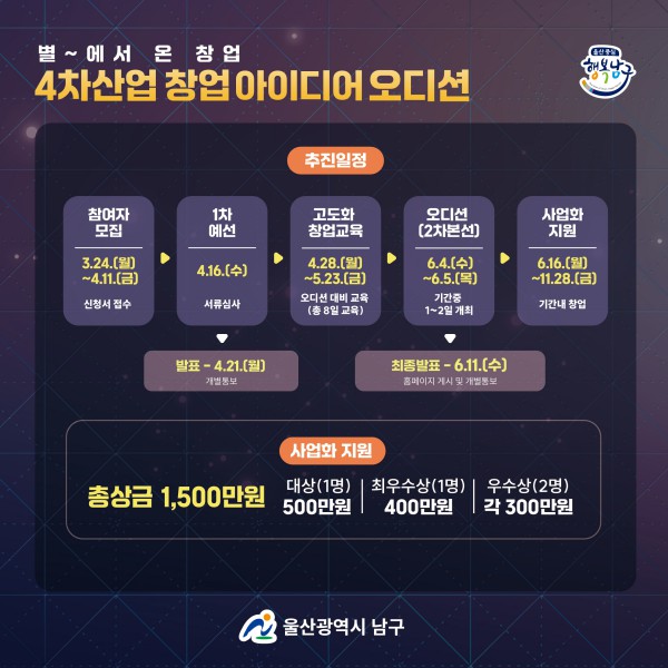 울산 남구 4차산업 창업아이디어 오디션 참여자 모집 공고