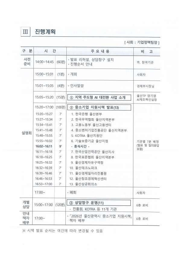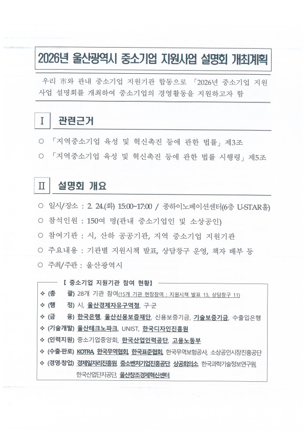2026년 울산광역시 중소기업 지원산업 설명회 |