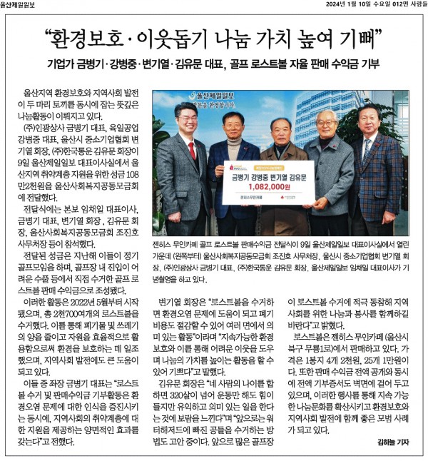로스트볼 자율판매 수익금 울산사회복지공동모금회에 전액 기부