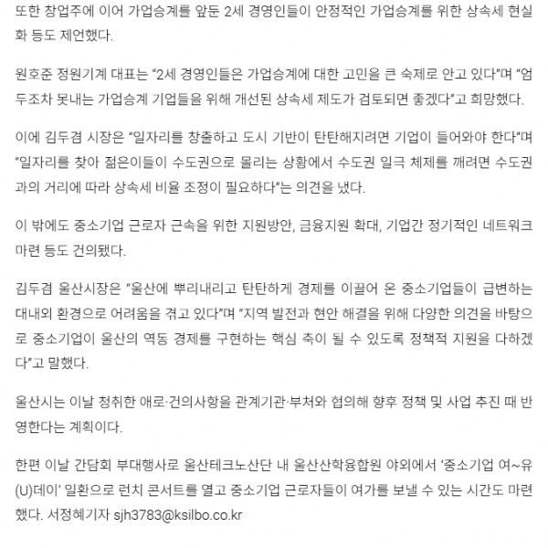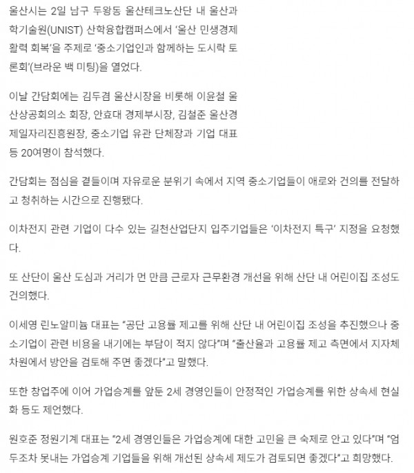 민선8기 김두겸 시장과 중소기업인 간담회 개최