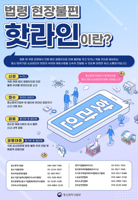 중소기업과 소상공인 법령 제개정 핫라인 개설