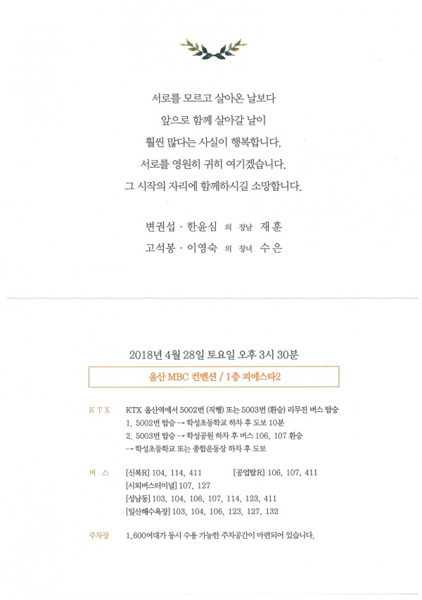 울산중소기업협회 회원이신 대영테크 변권섭 대표님의 장남 결혼식을 알려드립니다.