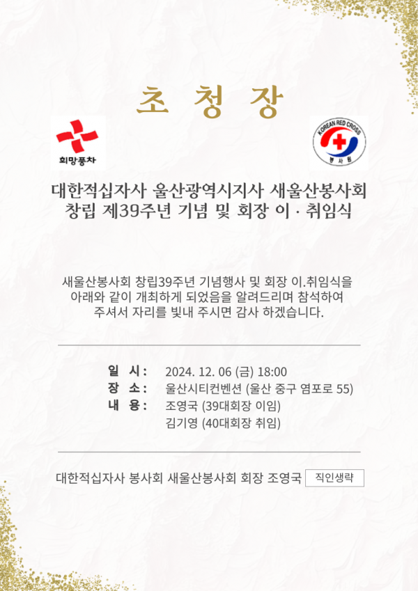 (주)포커스 김기영 대표 대한적십자사 울산광역시지사 회장 취임식 안내